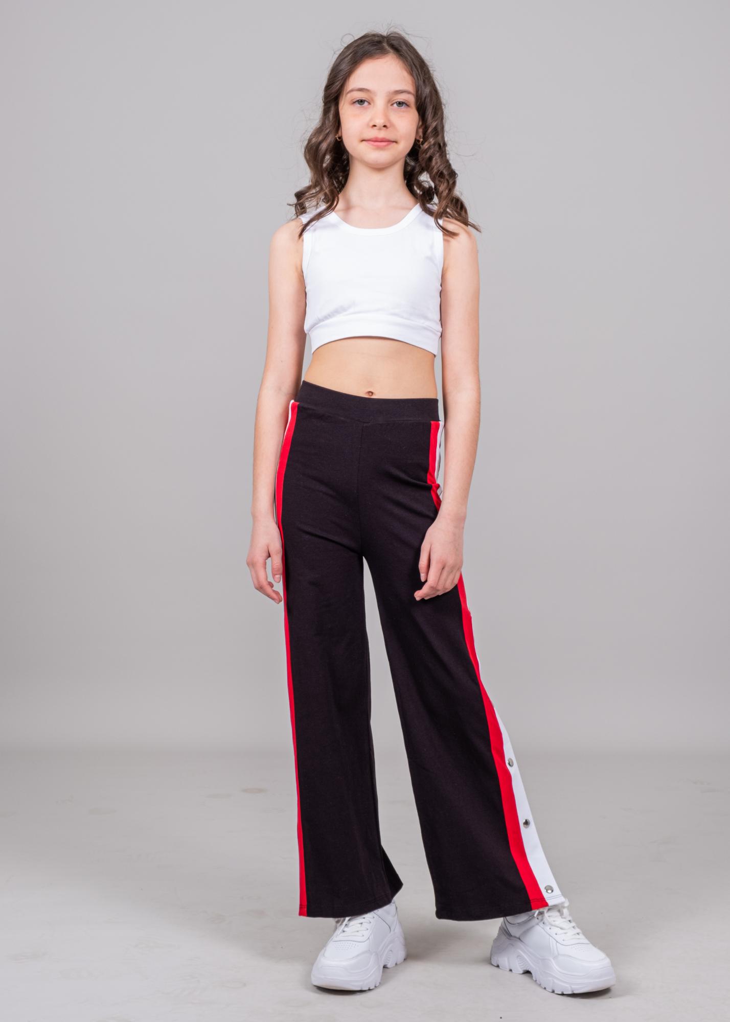 Брюки MARIONS трикотажныедля девочки оптом. Модель прямого кроя, по боковым швам от линии колена застегиваюся на кнопки.