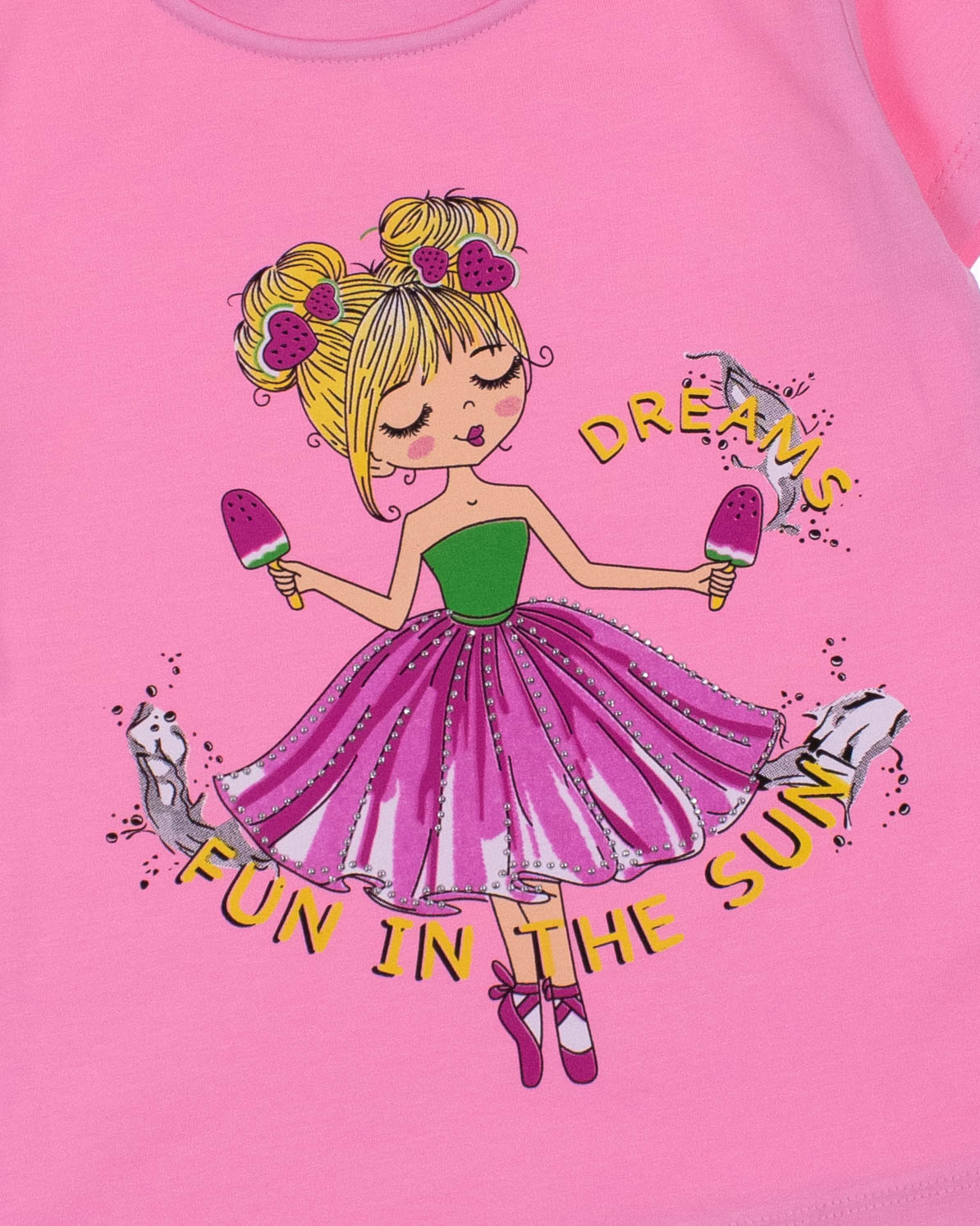 Футболка ECRIN для девочки оптом, производства Турция. Модель приталенного силуэта с короткими рукавами и милым принтом.
