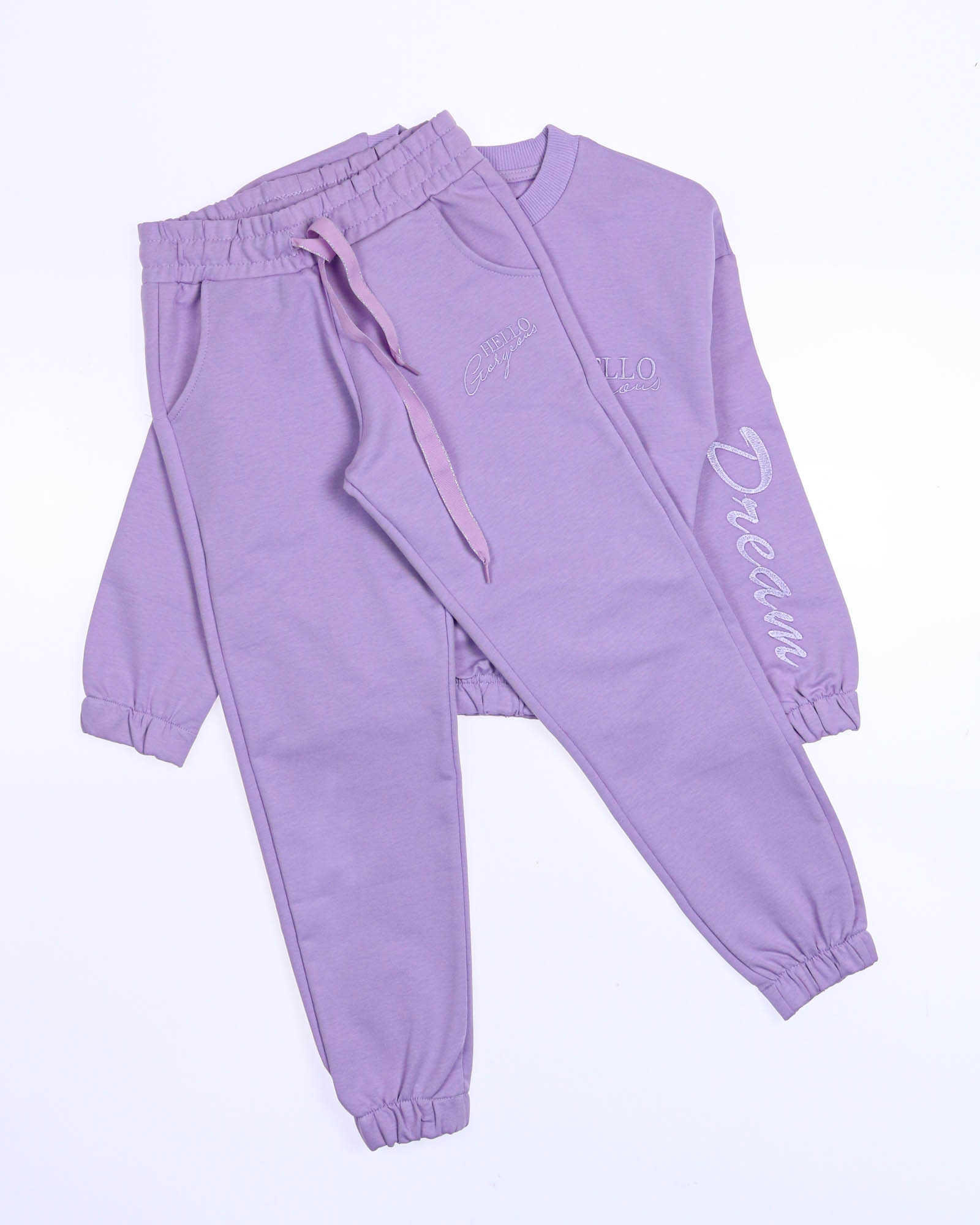 Стильный костюм создан для занятий спортом и прогулок.Свитшот со спущенной линией плеча, брюки с манжетами. Костюм выполнен из трикотожа футер 2х нитка.