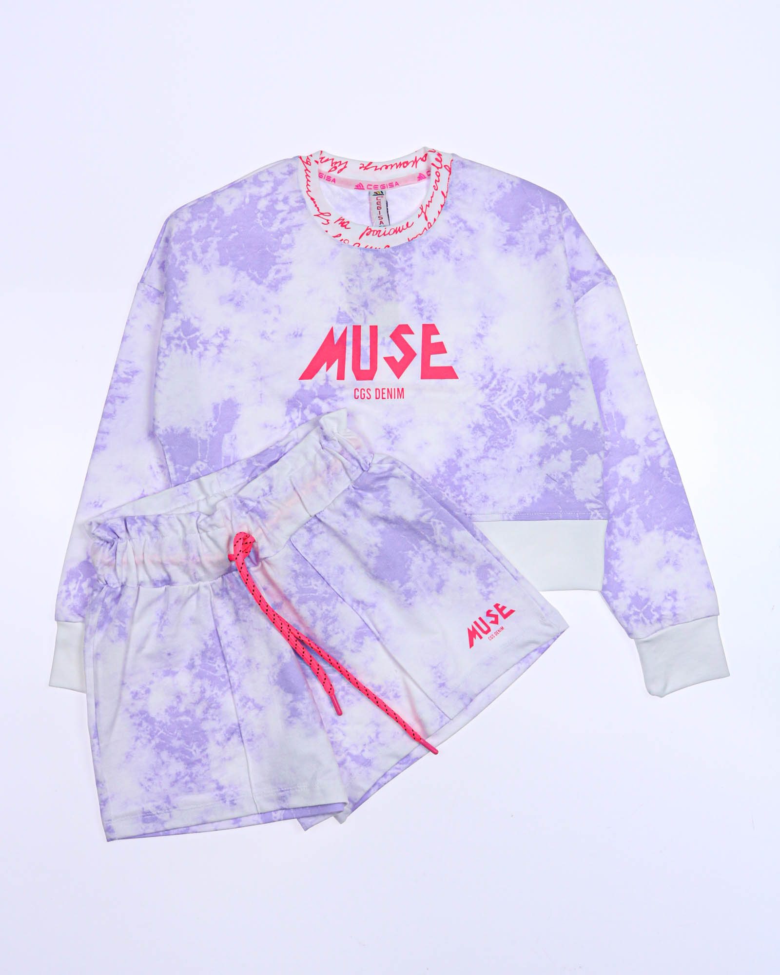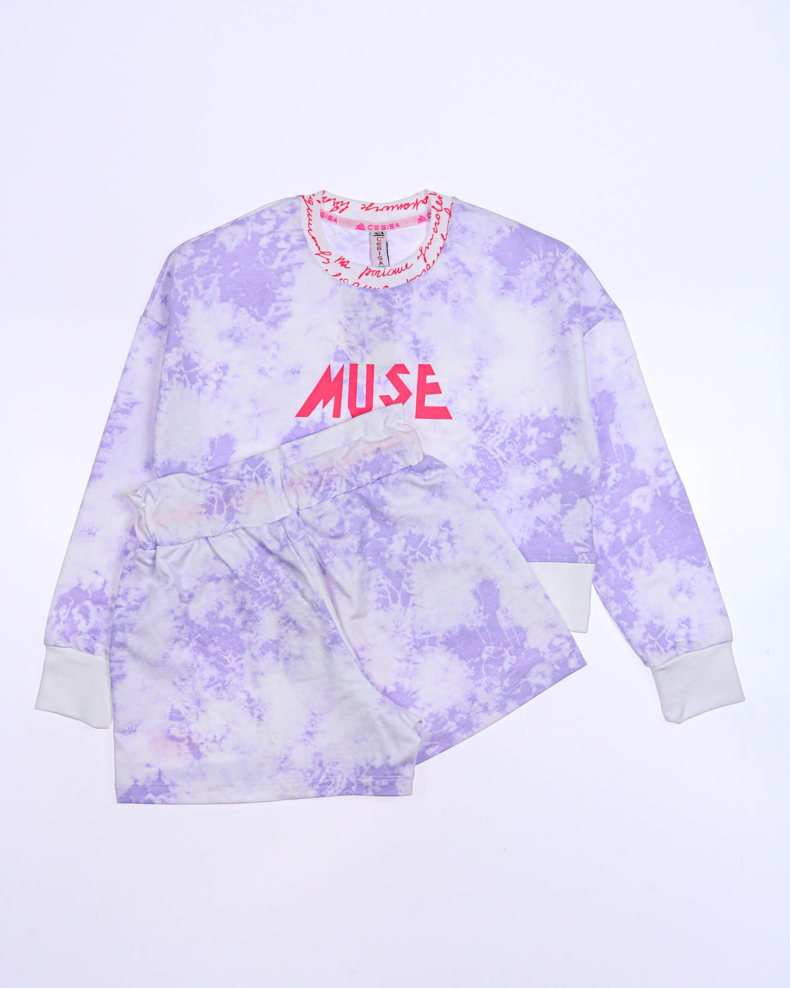 "Трикотажный костюм из хлопка, выполнен из футера и украшен принтом тай дай.