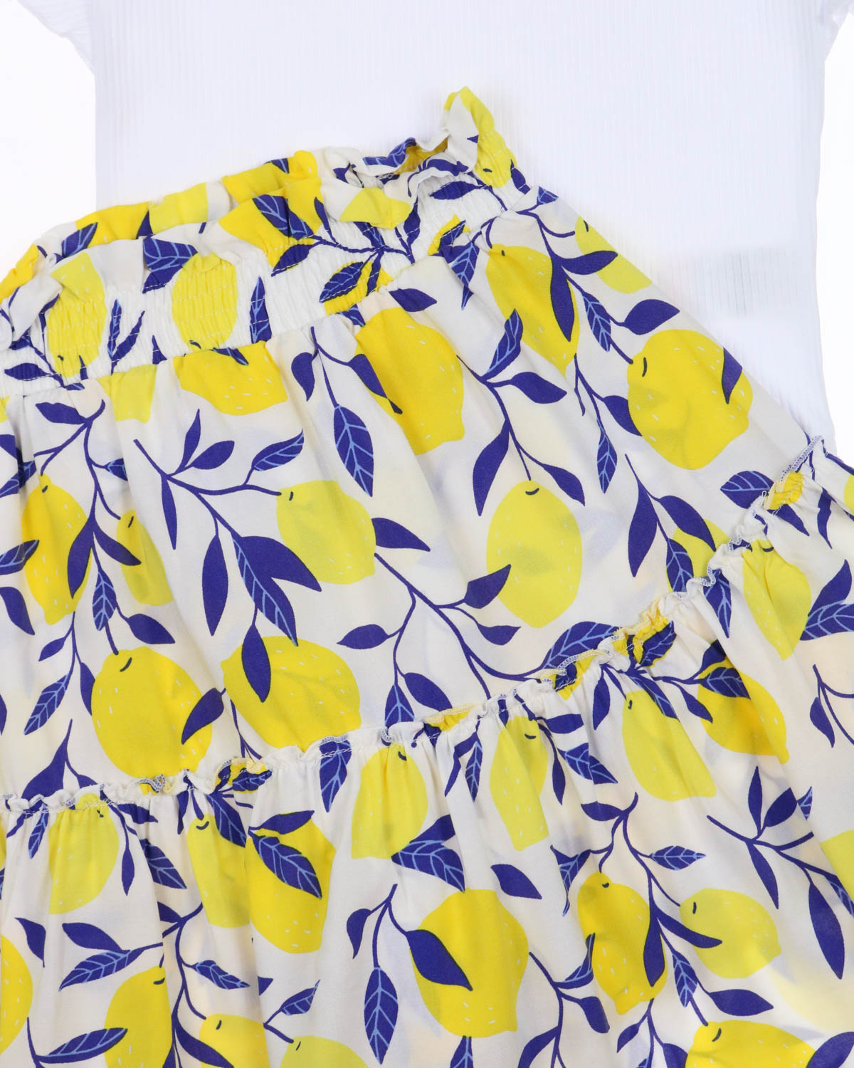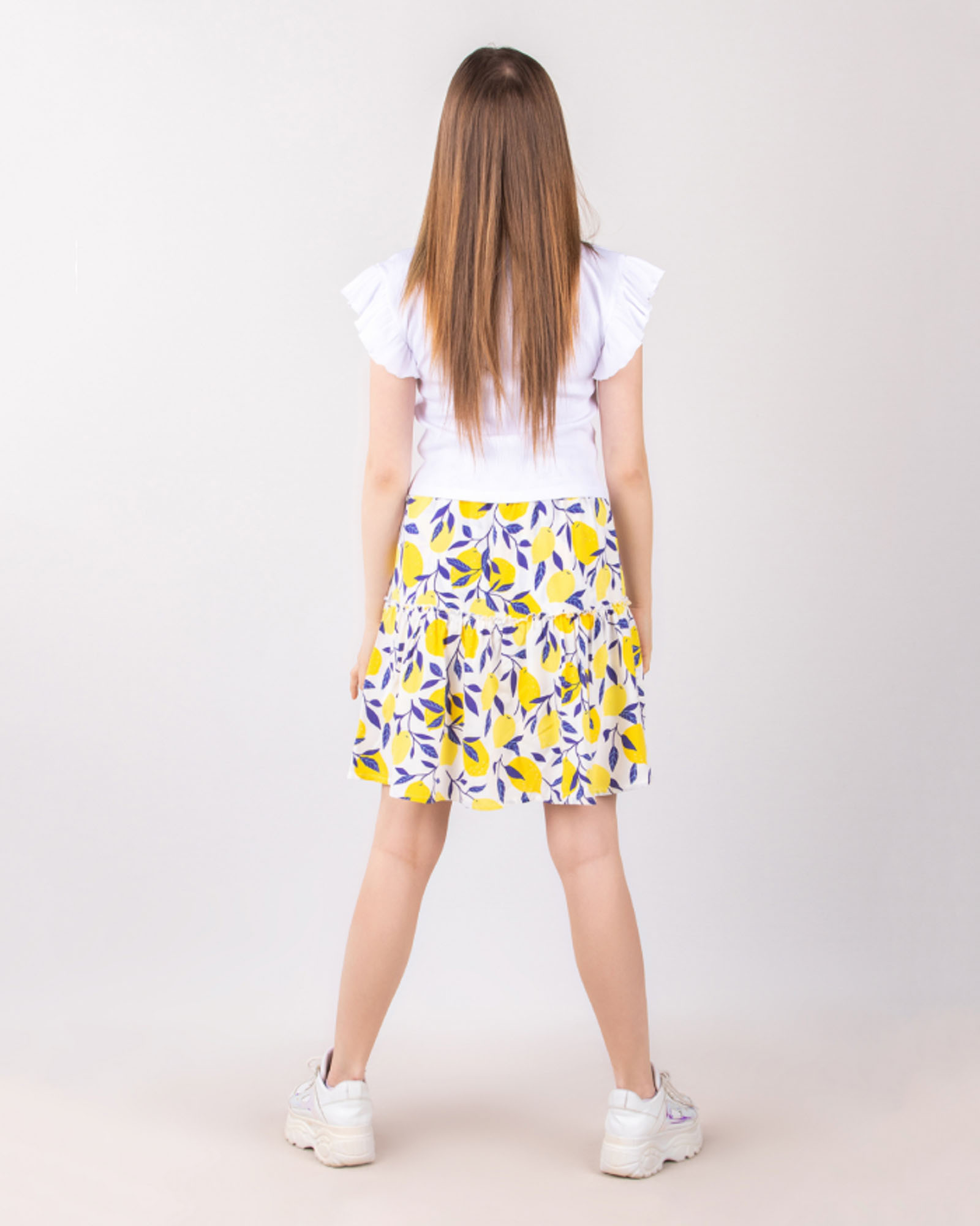 Легкий хлопковый костюм для девочек. В наборе трикотажная футболка прямого кроя с укороченным рукавом и юбка-шорты из штапеля выше колена. Детский костюм из натуральной ткани просто незаменим в летнюю жару.
