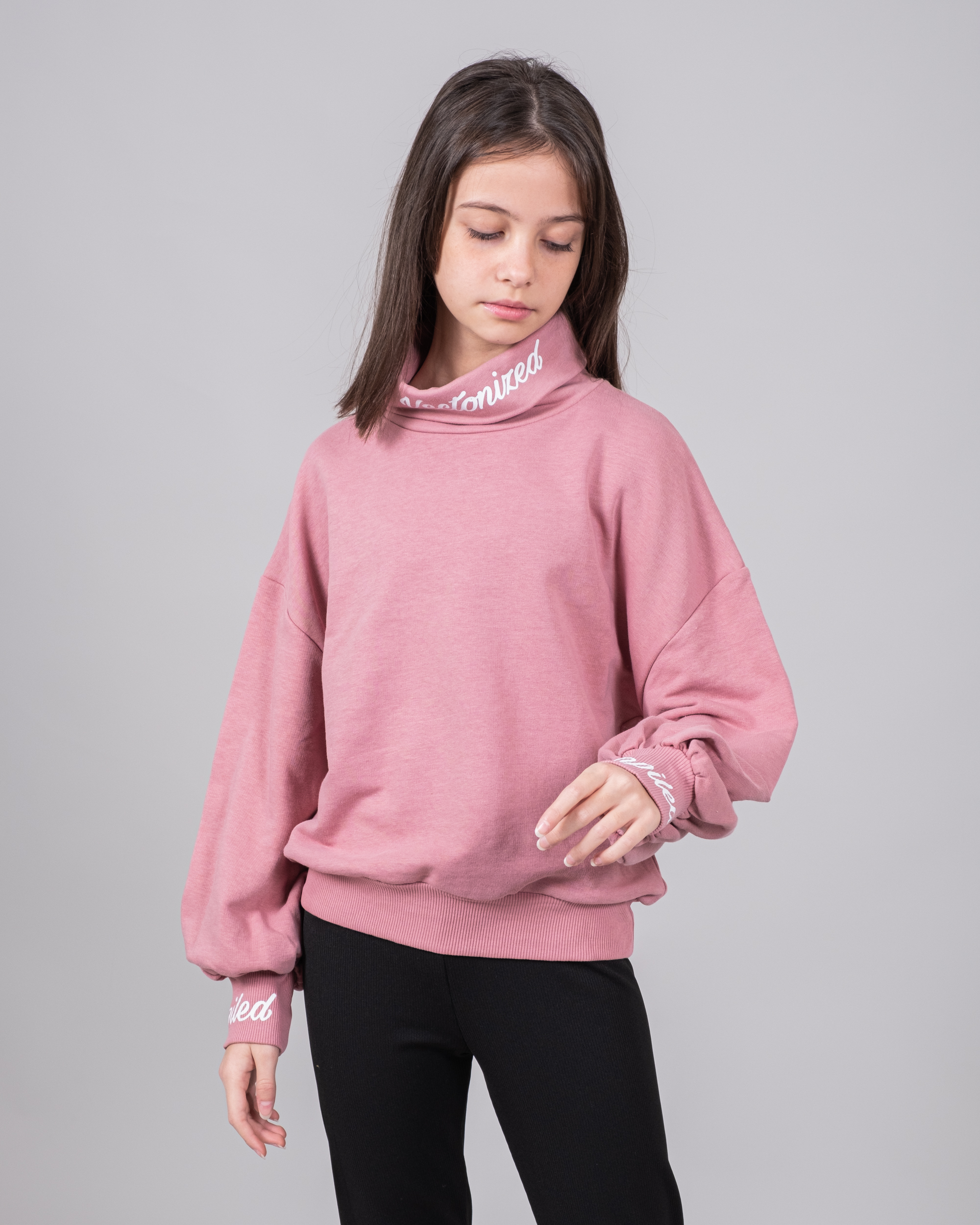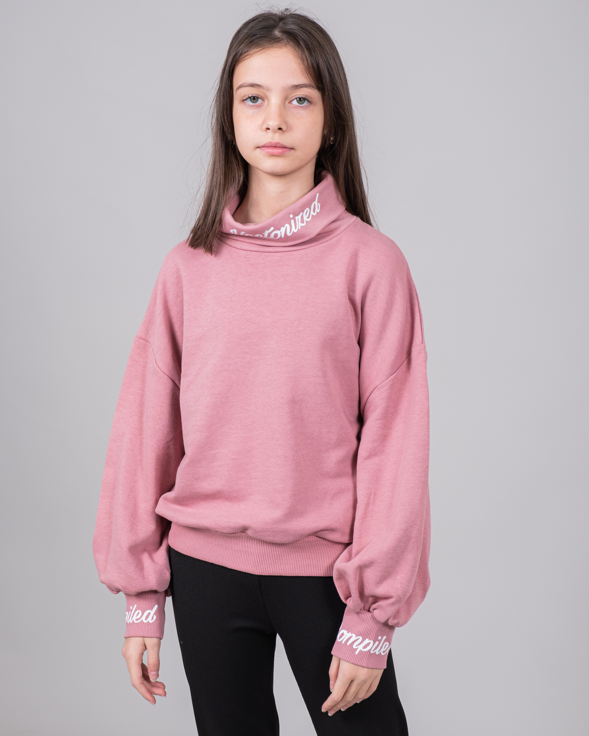 Свитшот для девочки выполнен из высококачественного и мягкого трикотажного полотна - футер (петля). Принт мягкий, выдерживает большое колличество стирок. Объемные рукава собраны в эластичные манжеты, линия плеча спущена.