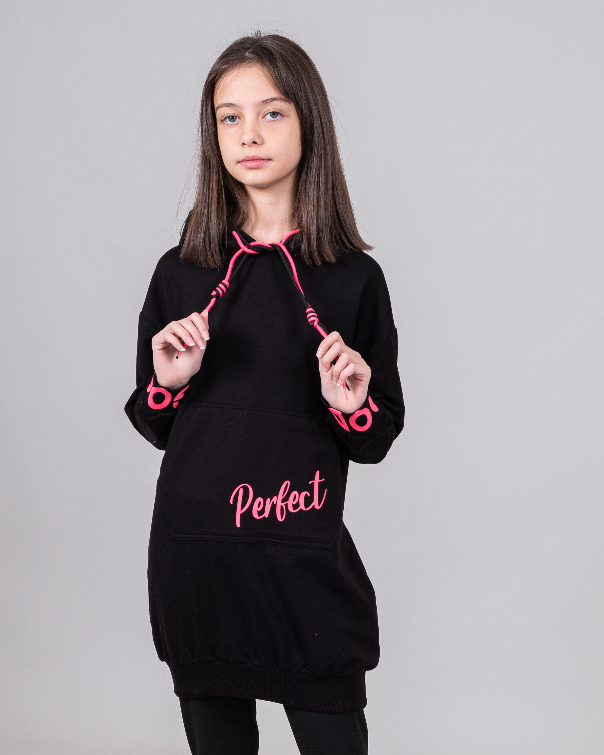 Удлиненное худи CEGISA для девочки выполнено из качественного трикотажа футер (петля). Декорировано яркими шнурками и принтом.