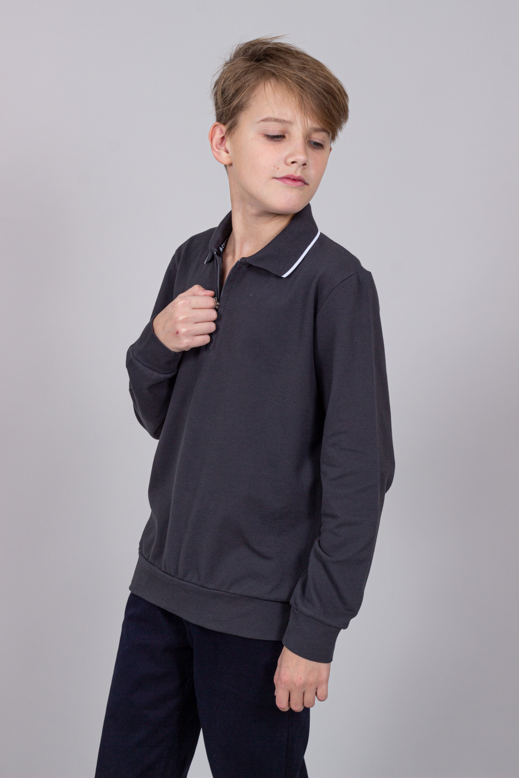 Детское поло для мальчиков. Поло имеет прямой силуэт, застёжку-планку на молнии, отложной воротник, эластичные манжеты по низу. Поло для мальчика - отличная альтернатива классической рубашке. Поло для мальчика  идеально подойдет на каждый день и в качестве верха школьной формы. Поло не деформируется и не растягивается в процессе эксплуатации и после стирки.