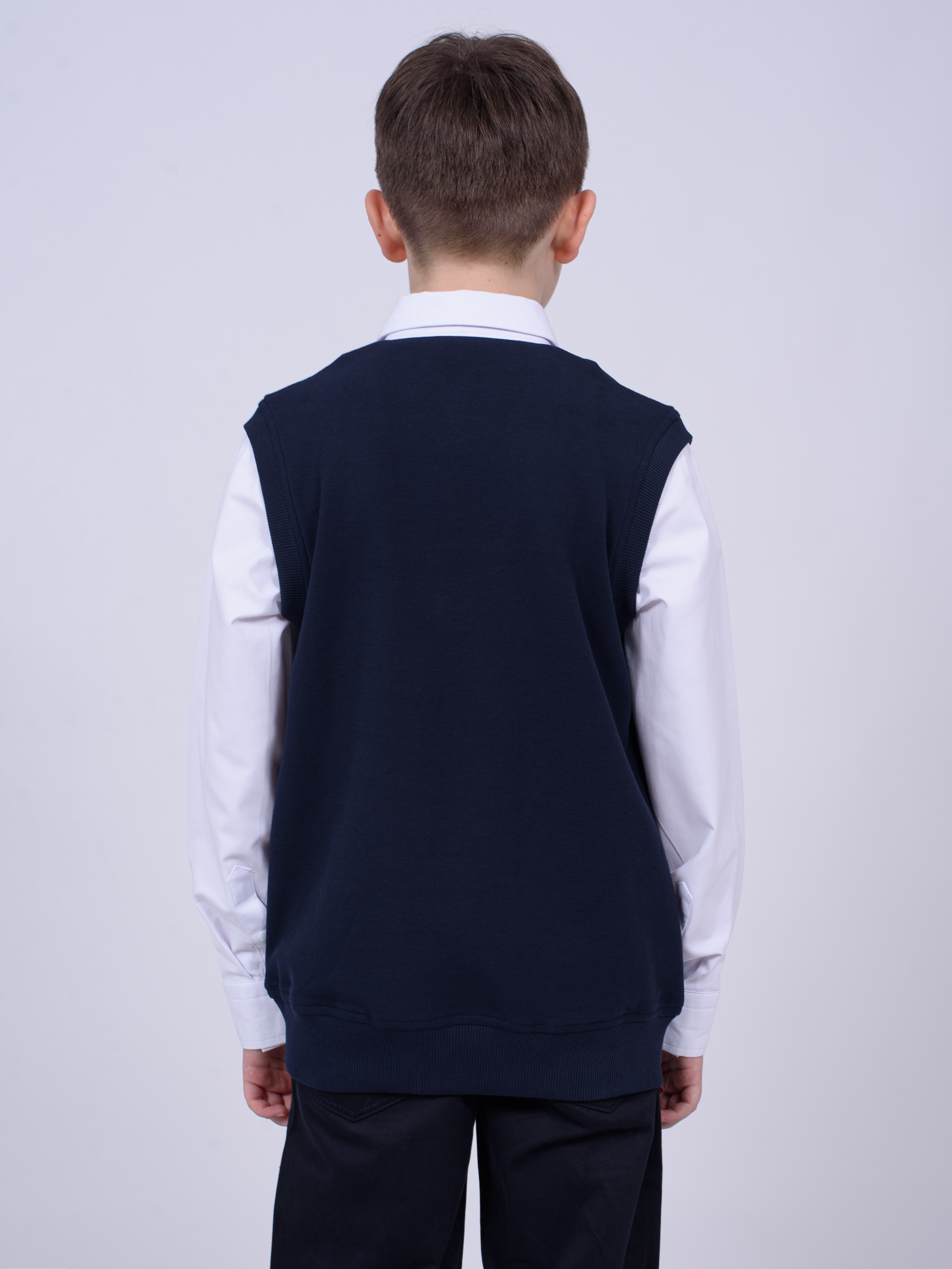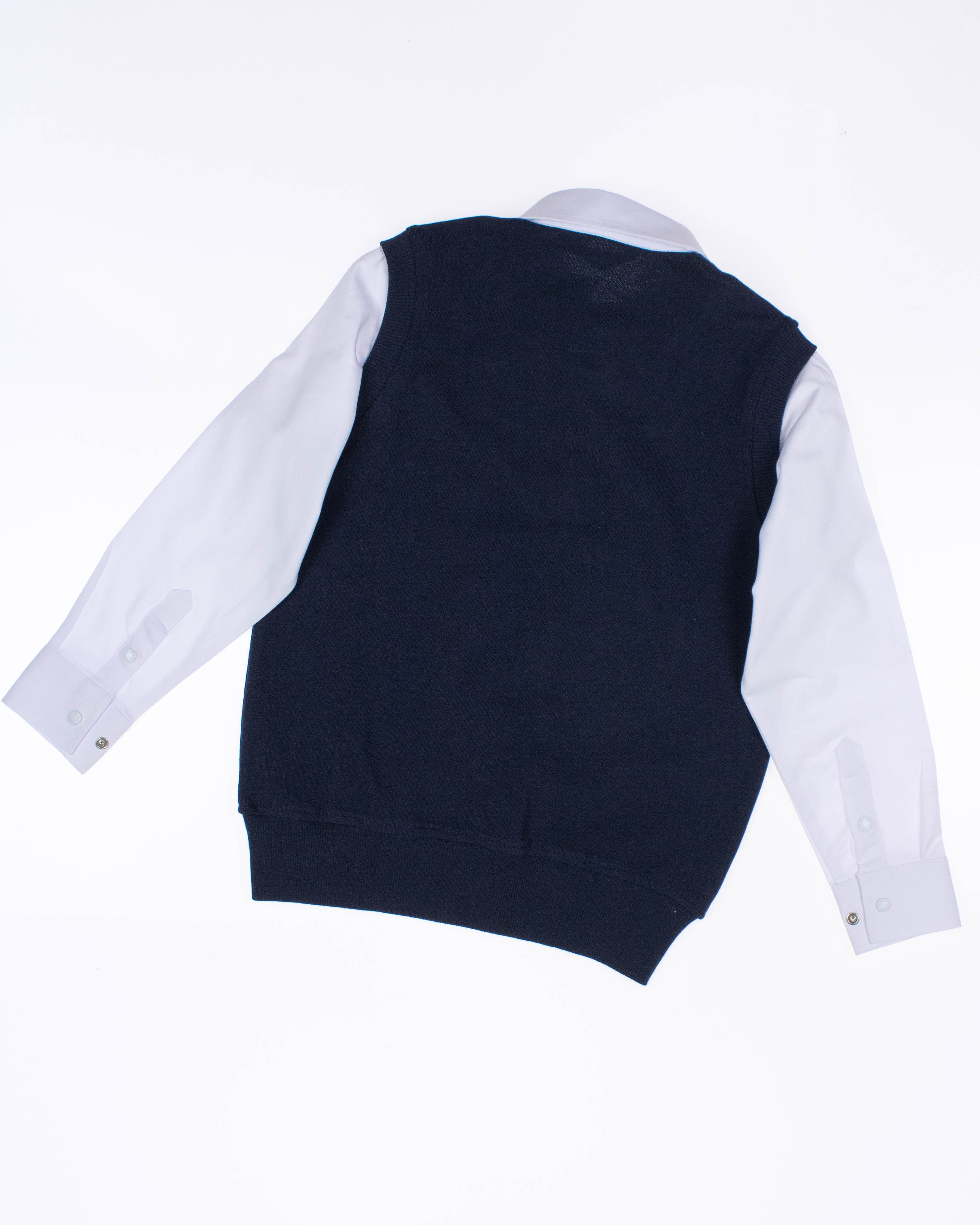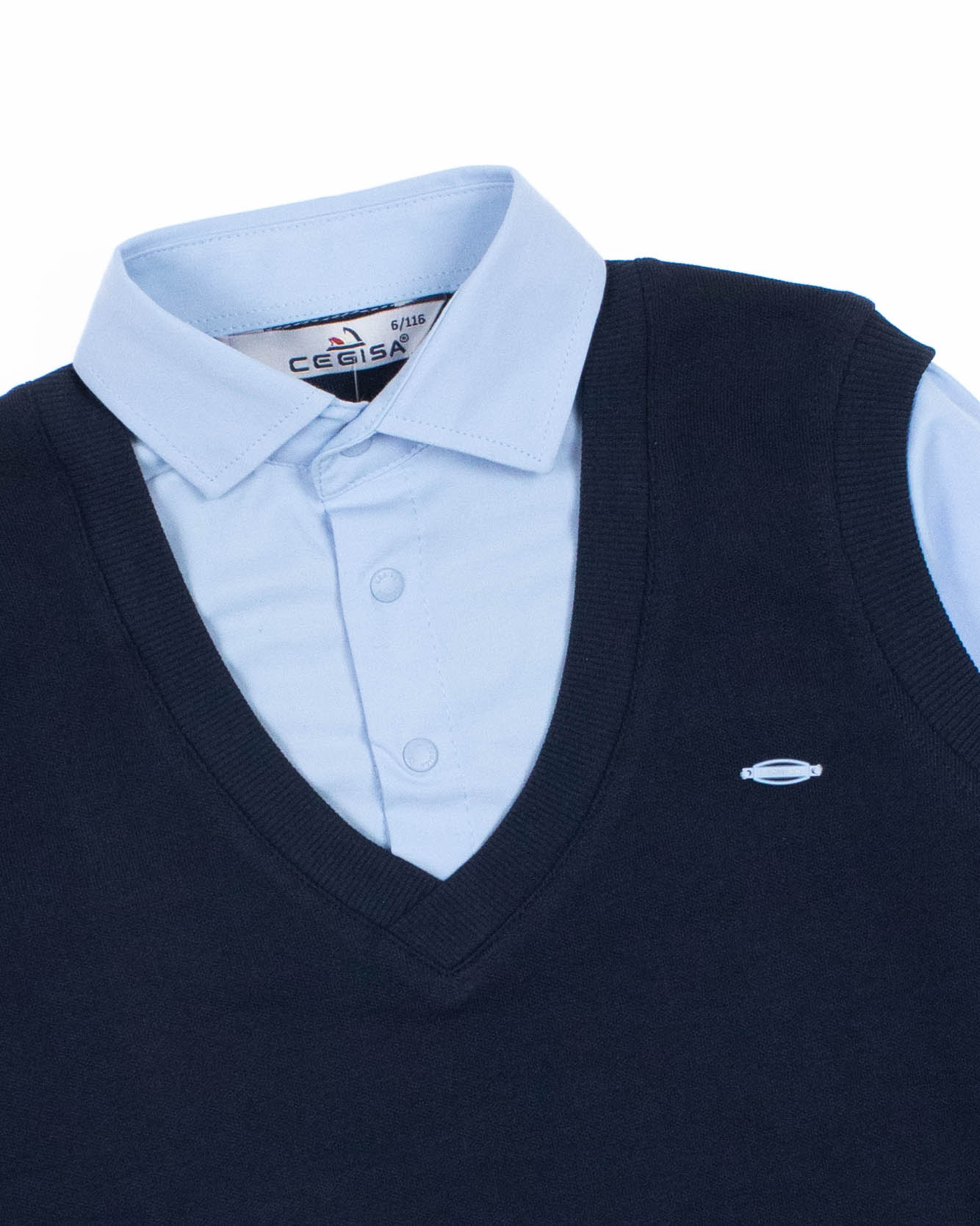Школьный джемпер-обманка для мальчика оптом с имитацией рубашки выполнен из качественного хлопкового трикотажа с небольшим добавлением лайкры. Ворот сшит из рубашечной хлопковой ткани, застежка-кнопки.  Джемпер-обманка выглядит как полноценный комплект рубашки и джемпера. Мальчик будет всегда опрятен в школе, сохраняя при этом официальный дресс-код. Качество наших изделий подтверждают многократные стирки в стиральной машине, при которых жилет-обманка сохраняет прежний вид, без деформации и окрашивания рукавов или ворота. Торговая марка  CEGISA представляет большой ассортимент качественной, красивой, классической школьной и спортивной одежды турецкого производства для детей и подростков.
