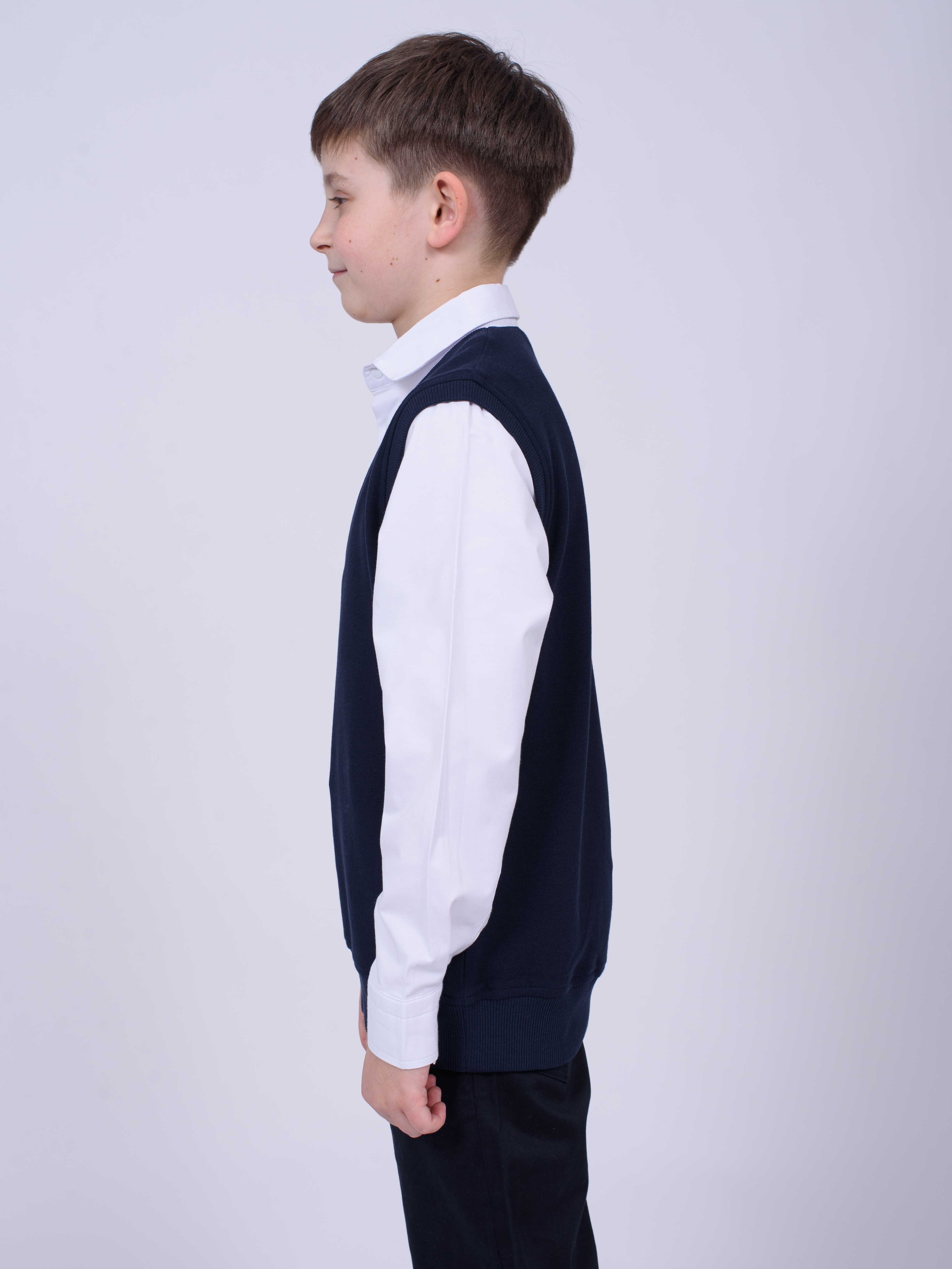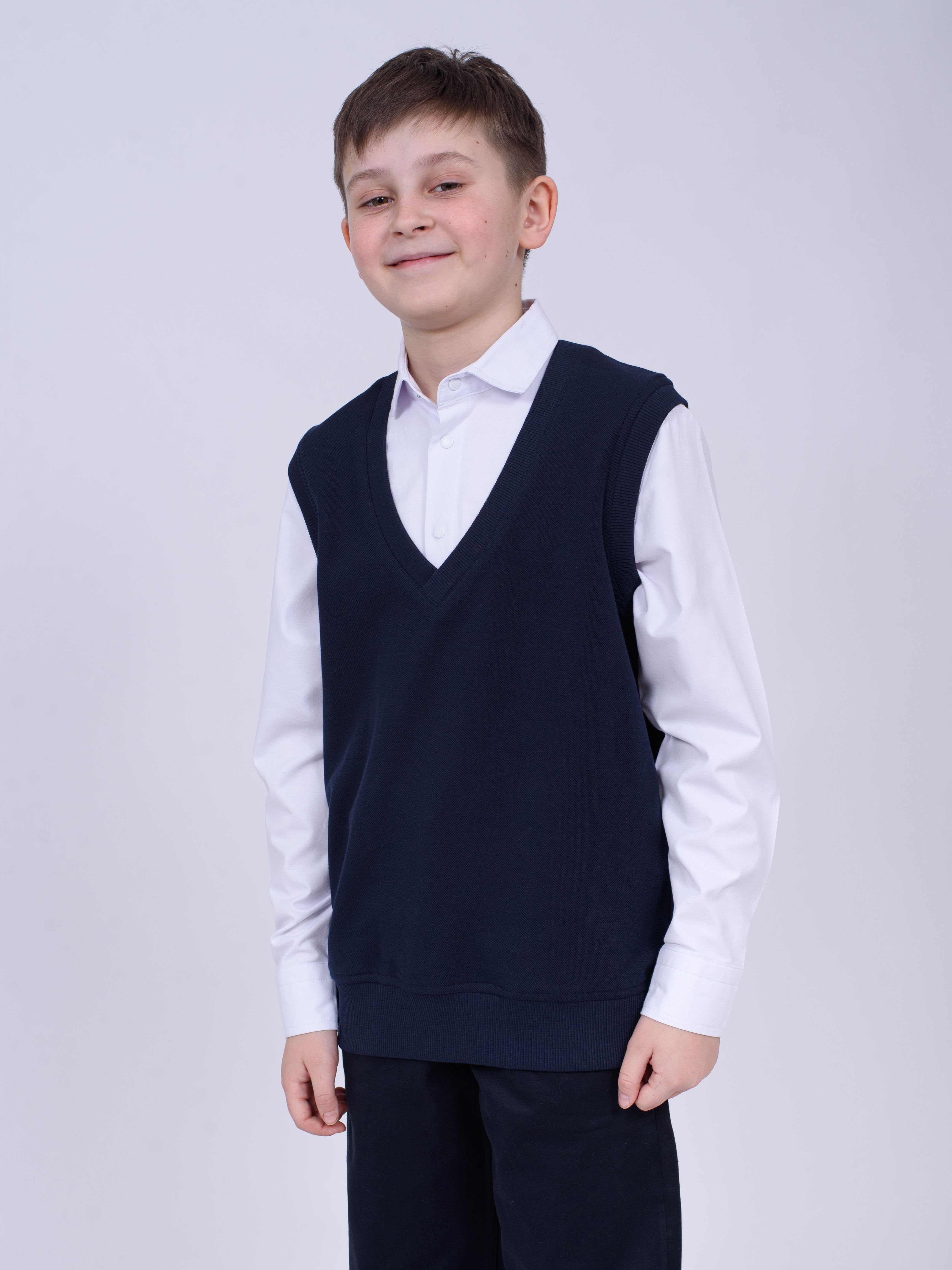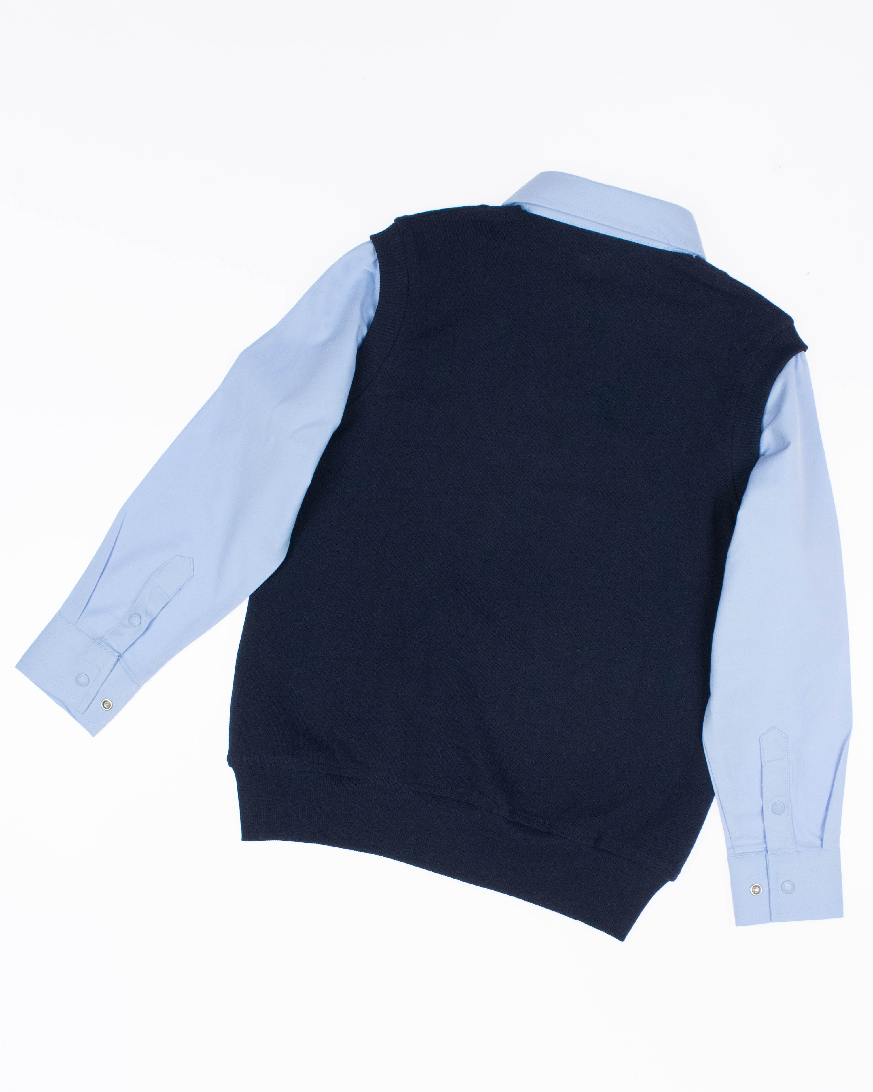 Школьный джемпер-обманка для мальчика оптом с имитацией рубашки выполнен из качественного хлопкового трикотажа с небольшим добавлением лайкры. Ворот сшит из рубашечной хлопковой ткани, застежка-кнопки.  Джемпер-обманка выглядит как полноценный комплект рубашки и джемпера. Мальчик будет всегда опрятен в школе, сохраняя при этом официальный дресс-код. Качество наших изделий подтверждают многократные стирки в стиральной машине, при которых жилет-обманка сохраняет прежний вид, без деформации и окрашивания рукавов или ворота. Торговая марка  CEGISA представляет большой ассортимент качественной, красивой, классической школьной и спортивной одежды турецкого производства для детей и подростков.