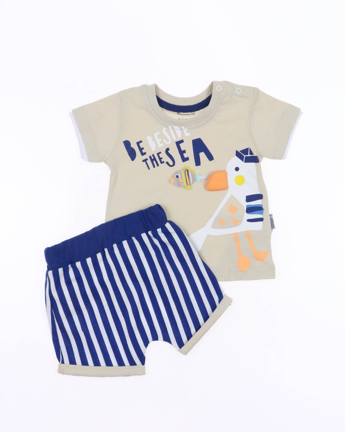 Удобный, красочный комплект для малыша. Выполнен из натурального, хлопкового материала. Футболка декорирована забавным принтом, на плече две кнопки для удобного переодевания. Шорты по талии на широкой, мягкой резинке.