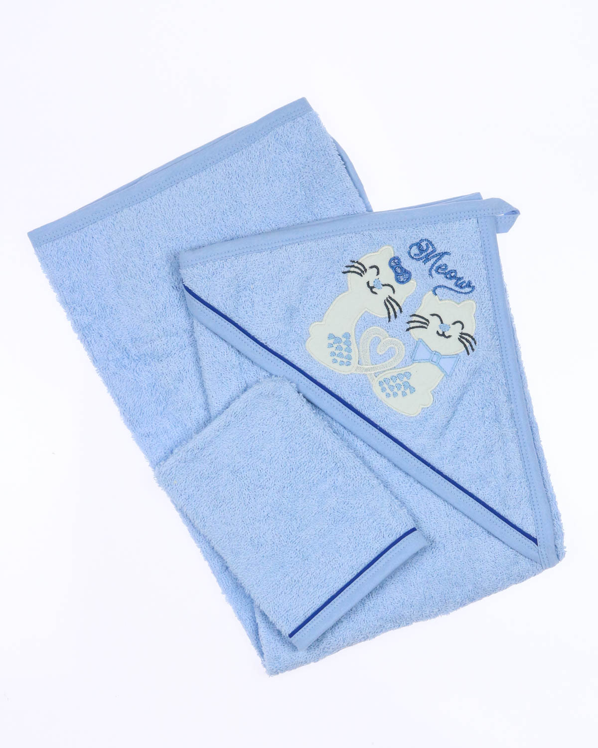 Полотенце с капюшоном и рукавица, позволяет вытирать ребенка после купания так, чтобы его головка всегда оставалась в тепле. Благодаря петельке - детское полотенце с капюшоном легко повесить сушиться, а варежкой можно вытереть ребёнка после кормления, а также утром после крепкого сна. Детское полотенце из махровой ткани приятное на ощупь, отлично впитывает влагу и быстро сохнет. Капюшон декорирован милейшей аппликацией и вышивкой. Края детского полотенца обработаны хлопковой трикотажной окантовкой.