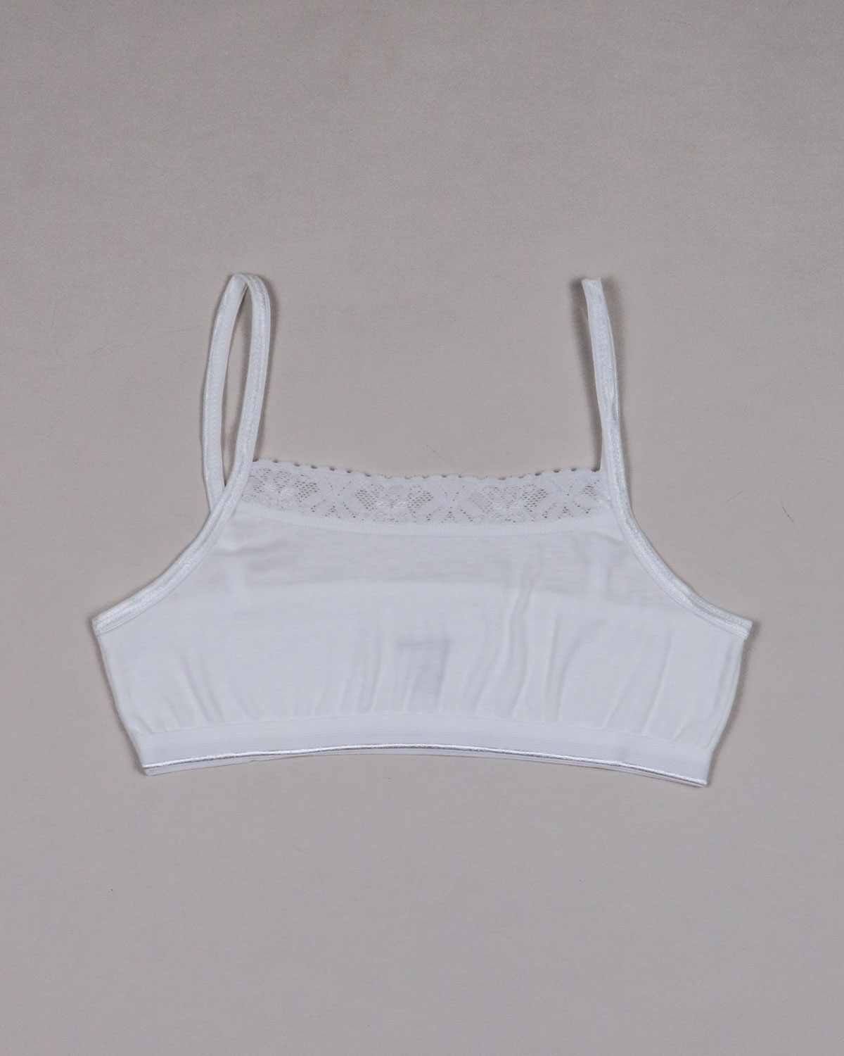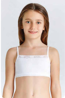 Детский бельевой топ на тонких бретелях для девочек и девочек-подростков выполнен из натурального гипоаллергенного хлопка. Топ-бюстье выполнен в базовом белом цвете. Плотный трикотаж и эластан в составе делают топик прочным и эластичным. Бюстье для детей выдерживает многочисленные стирки и надолго сохраняет первоначальный внешний вид.